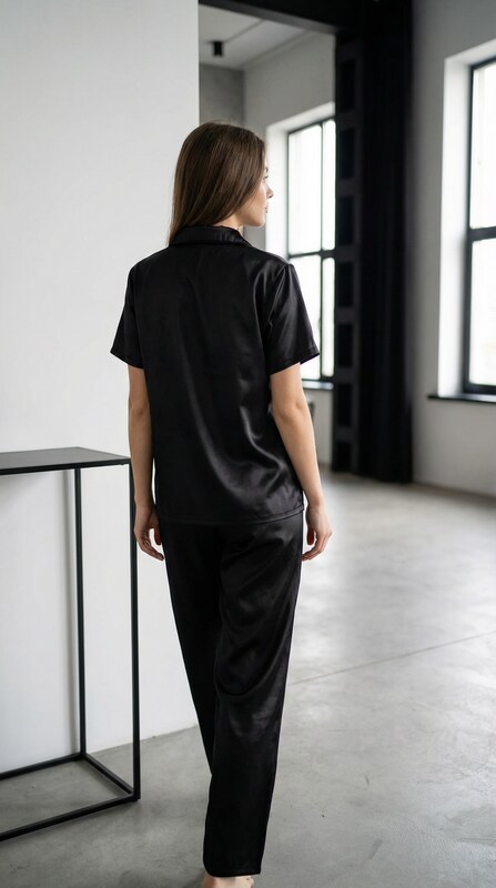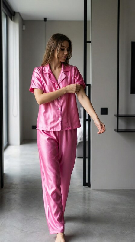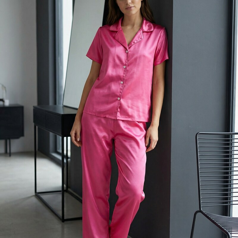 Camisa manga corta + pantalon confeccionados en saten.