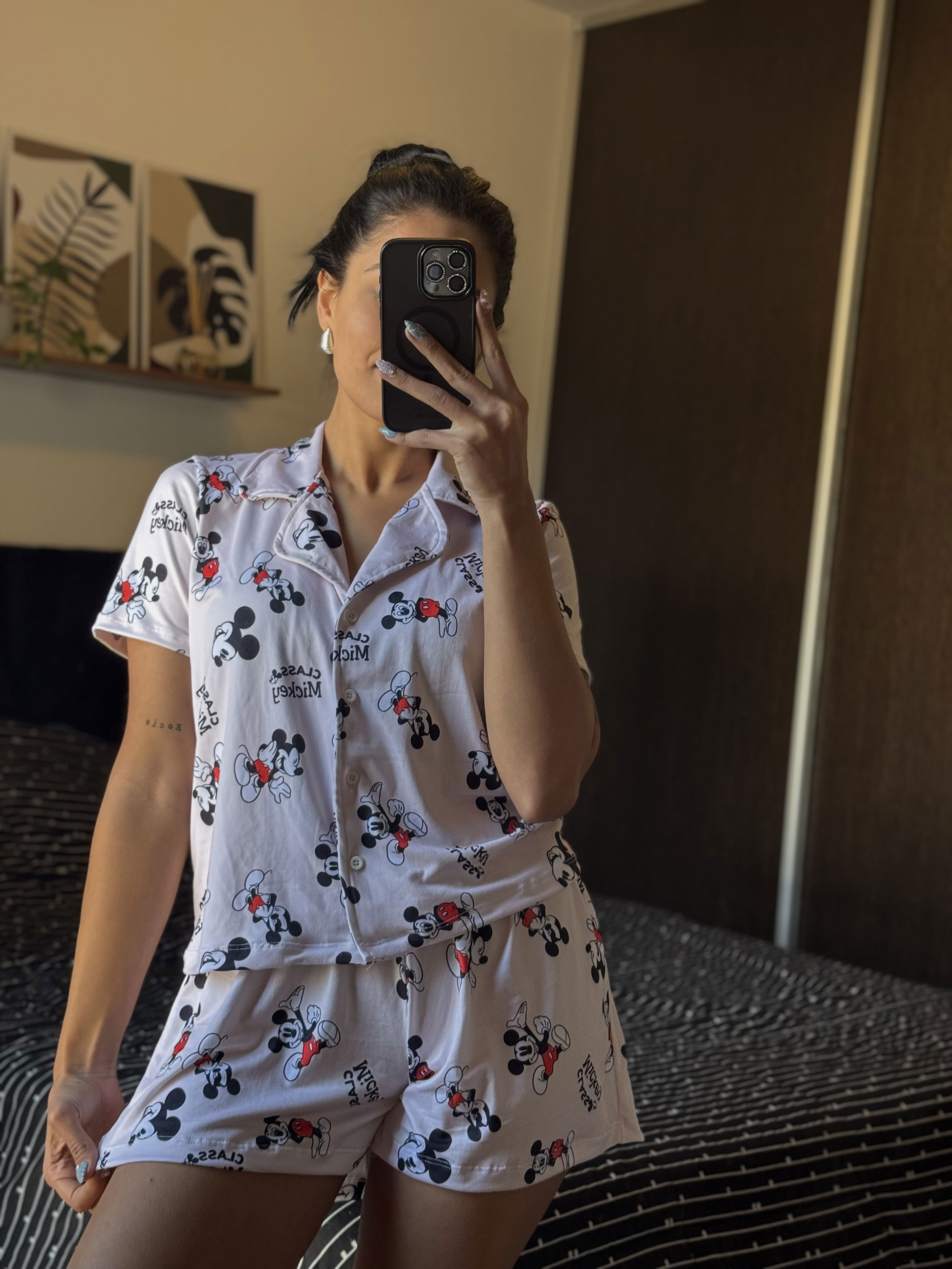 CAMISERO CORTO ADULTO MICKEY CREMA