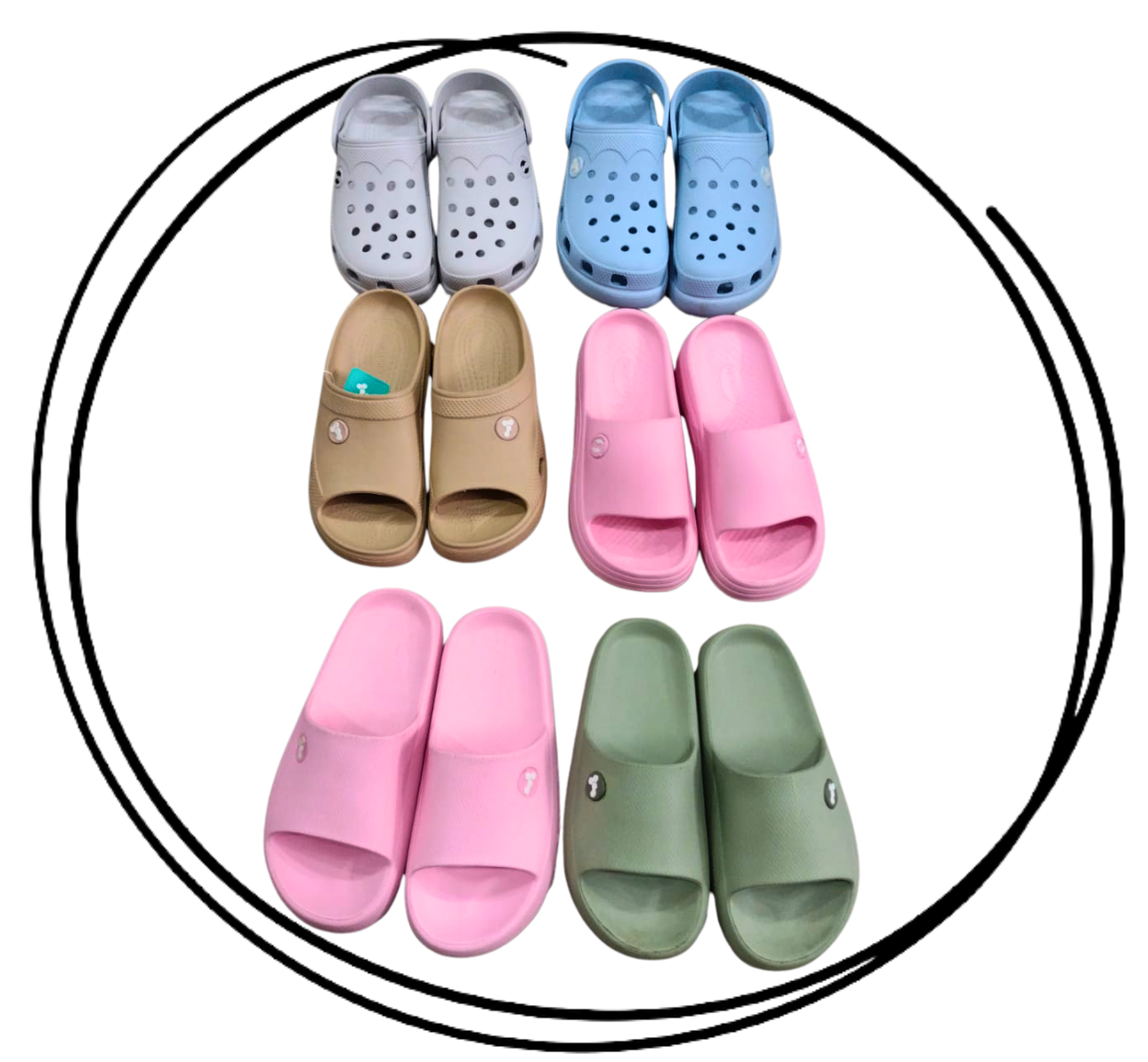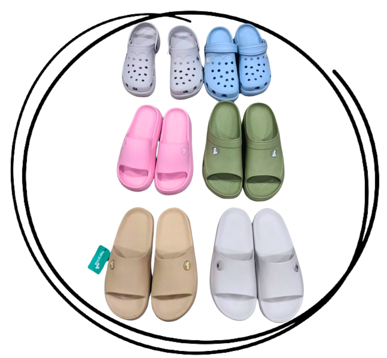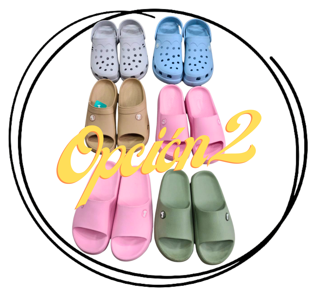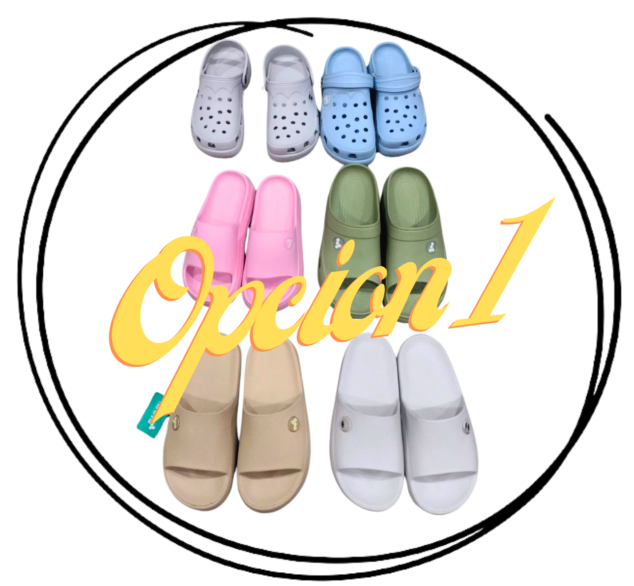 Promo premium zuecos HARENNA, 2 zuecos plataforma lisos talles del 35/36 al 39/40 y 4 gomones soft lisos talles del 35/36 al 39/40 surtidos.